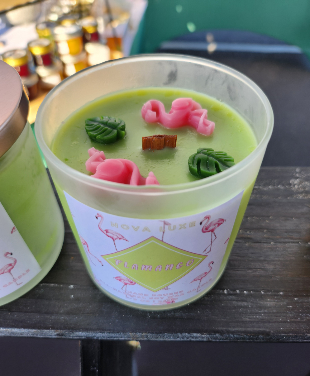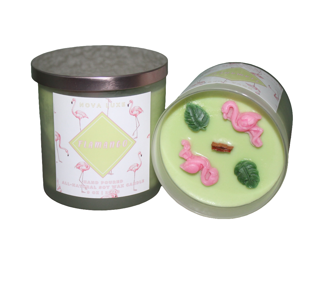 HELLO, SUMMER! "Flamango" features the scent of Mangoes with handmade Flamingo and banana leaf embeds!